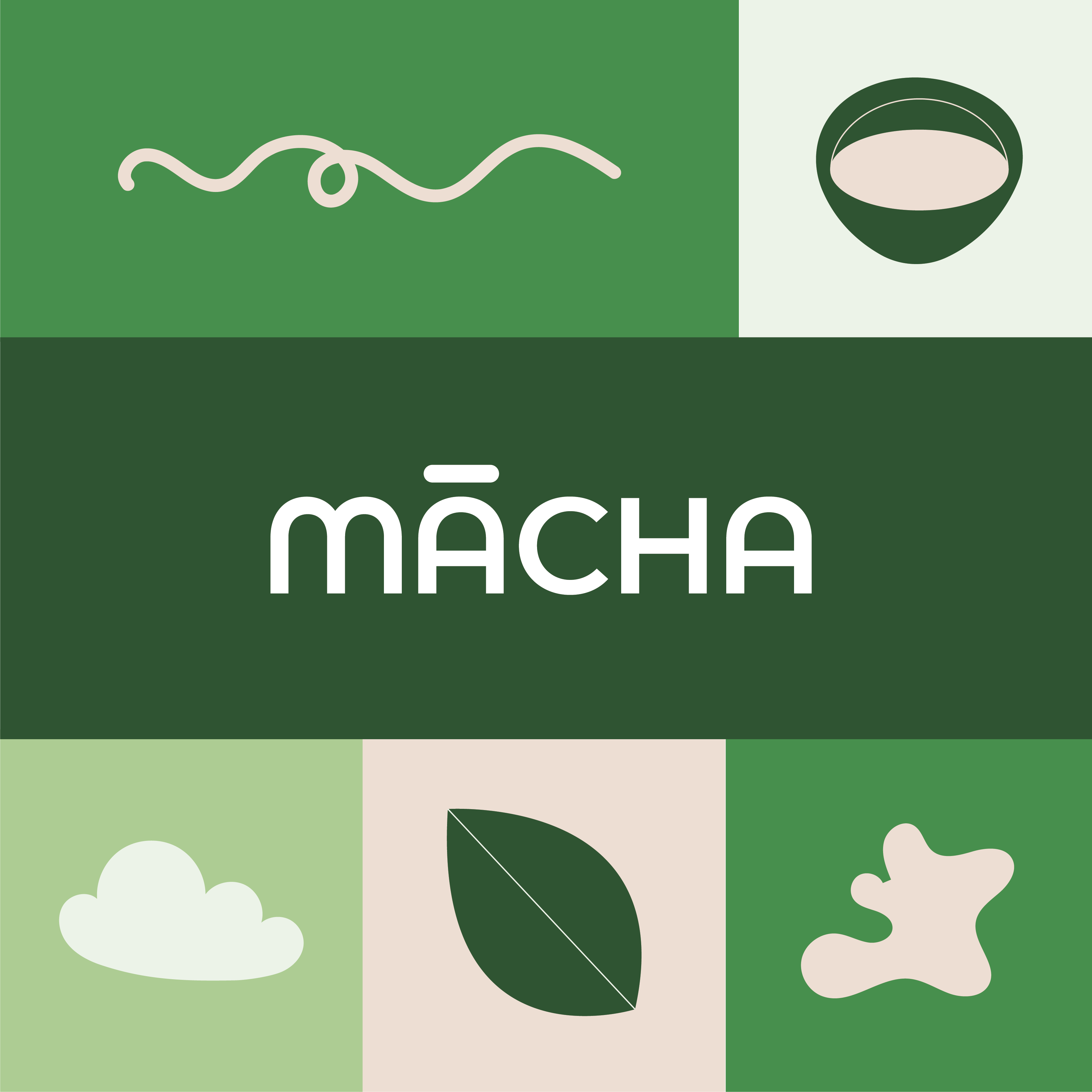 Bij het ontwerp van het Mācha-logo wilden we de essentie van matcha vangen: puur, kalm en energiek tegelijk. De ronde vormen en het zachte letterbeeld geven het merk een toegankelijke, jeugdige uitstraling, terwijl het accent boven de ‘ā’ een subtiele knipoog vormt naar de Japanse herkomst van de thee. De diepe groentint verwijst naar de rijke kleur van ceremoniële matcha, natuurlijk, krachtig en in balans.