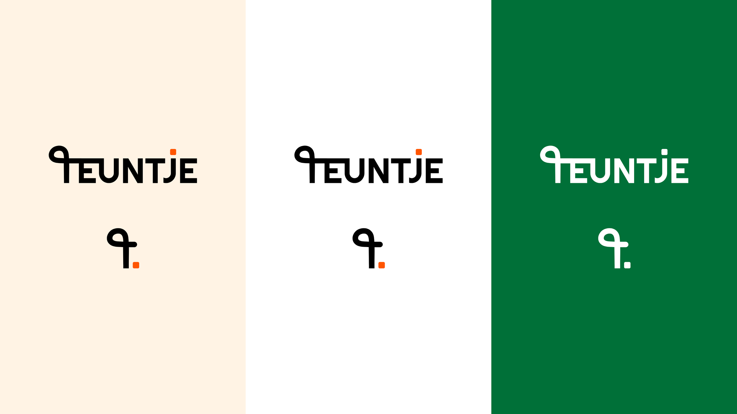 Het primaire logo vormt de basis van de branding en wordt ingezet in vrijwel alle uitingen. Dit is een typografisch logo met een speels oranje accent op de letter ‘J’ en de eerste letter ’T’ speels vervormd. Het accent verwijst naar een opnameknop en de letter ’T’ wordt uitgelicht op een speelse organische manier. Daarnaast zijn de eerste 3 letters verbonden met elkaar, dit is een klein detail dat verwijst naar de verbinding die binnen Teuntje haar beroep essentieel is.