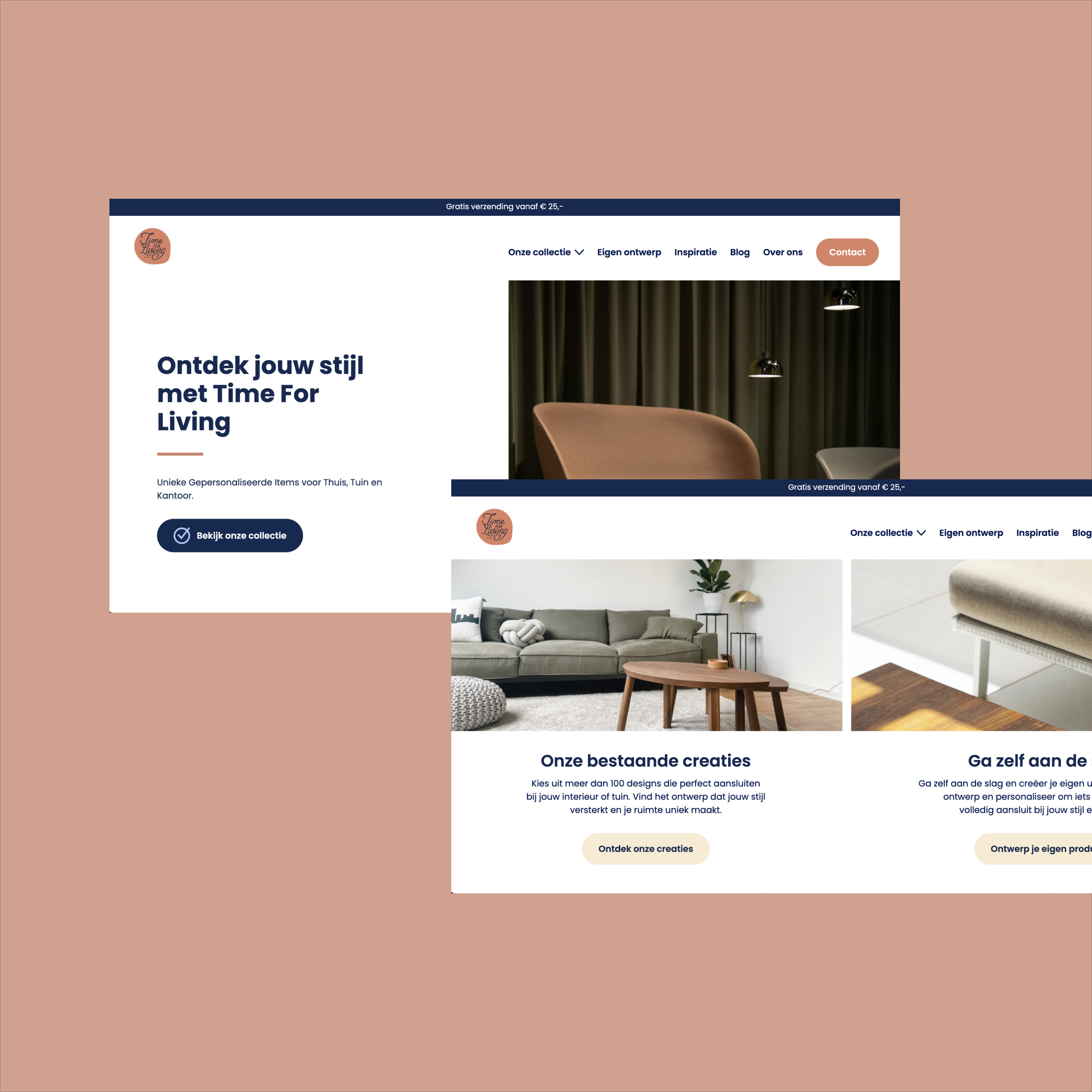 Voor Time for Living heb ik een website (shop) ontwerp mogen opzetten die aansluit bij hun huidige branding en merkwaarden. Daarnaast heb ik de webshop mogen uitwerken binnen WebFlow, tot een functionele webshop, geschikt om interieur artikelen te verkopen.